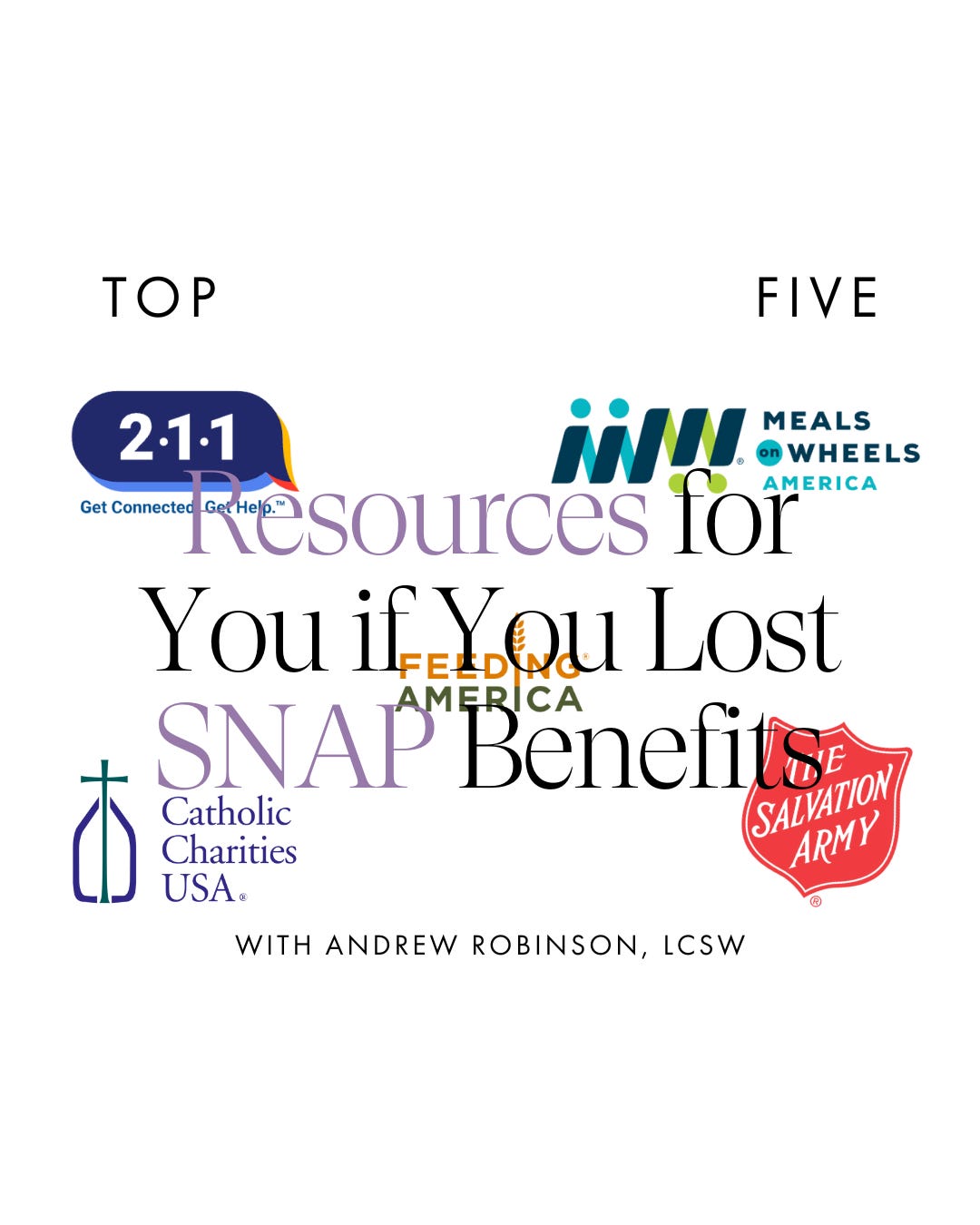 Andrew Robinson, LCSW, and I collaborated to share some organizations and agencies that can provide free groceries and meals to keep the people of America fed.
